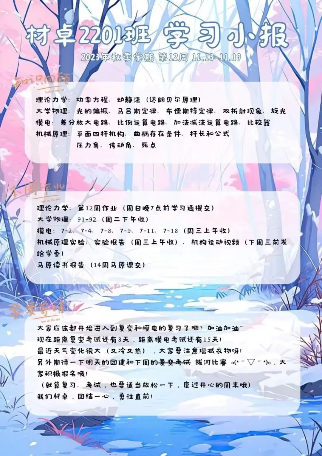 活动伊始,侯亚坤作为优秀学委代表向大家分享学委经验和心得。他提到,学委的日常工作除了收发作业、转发通知以外,还应当随时整理当前阶段老师布置的任务并且及时提醒班上同学,更应当注重班级学风建设,组织学习交流活动。为了维持班级良好学风,他会定期在班里开展学习交流会,请班里每位同学分享学习经验方法并共同解决阶段性问题。他精心制作的班级“学习周报”更是得到了大家的高度评价和称赞。