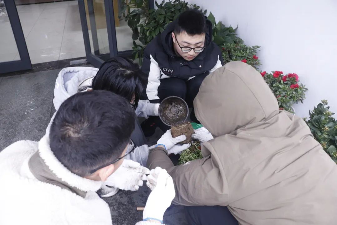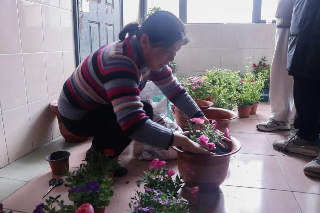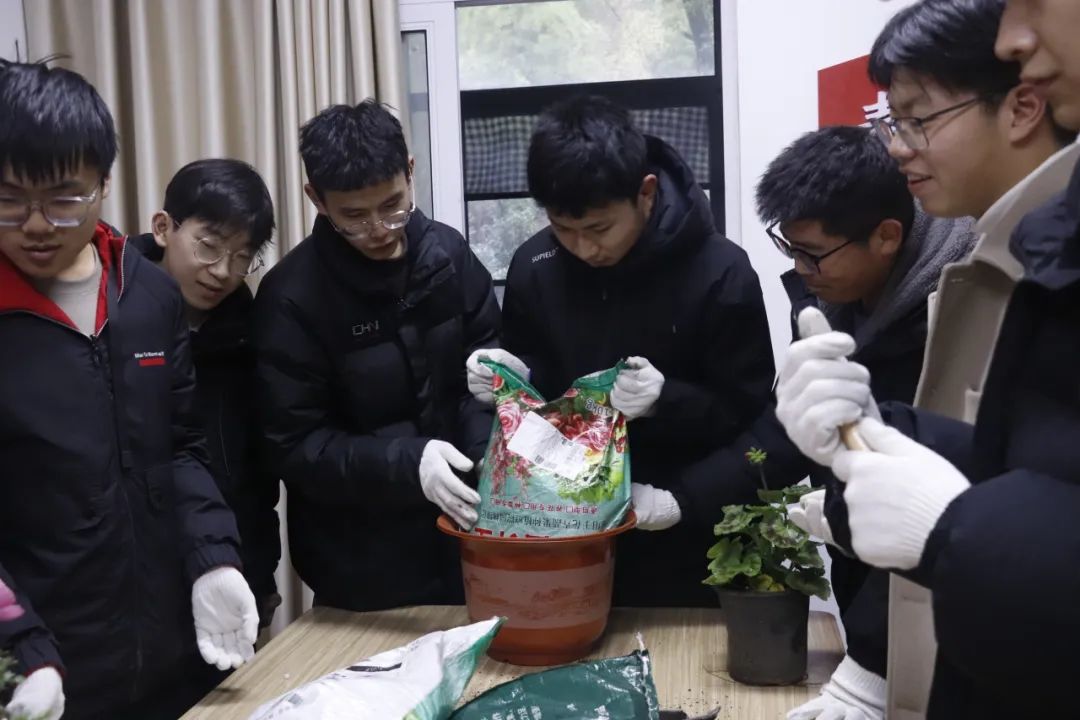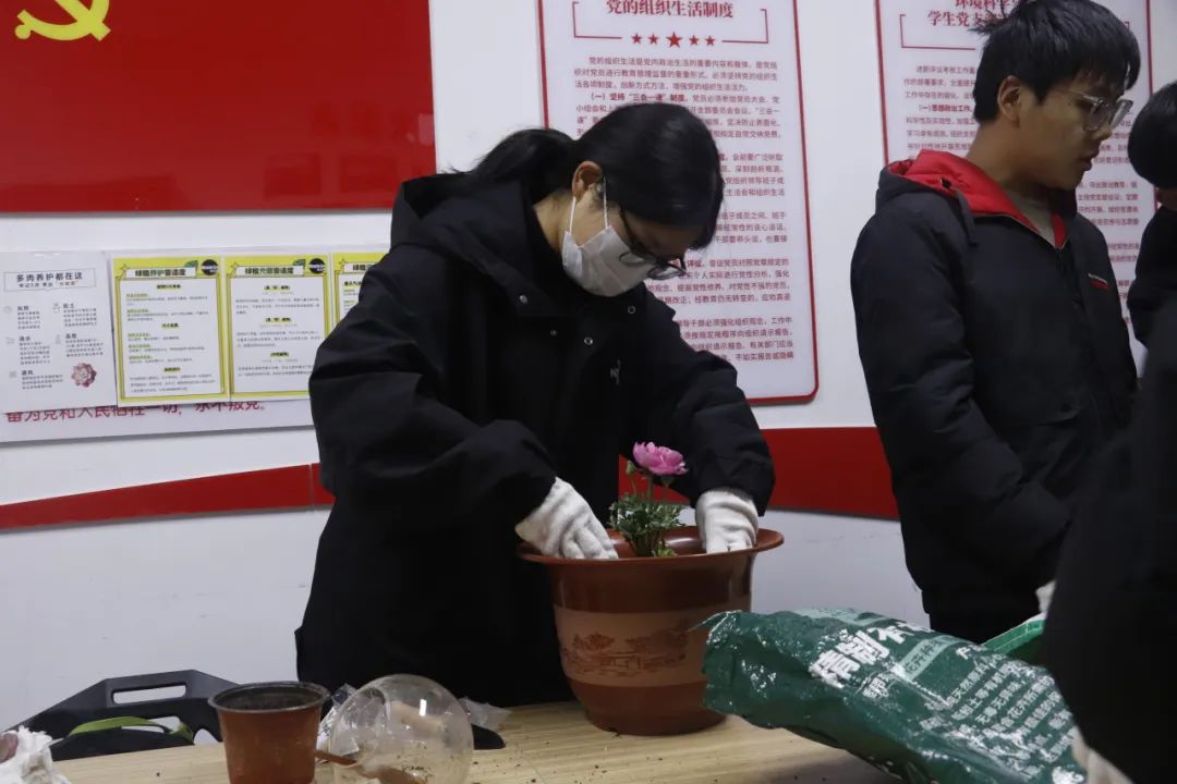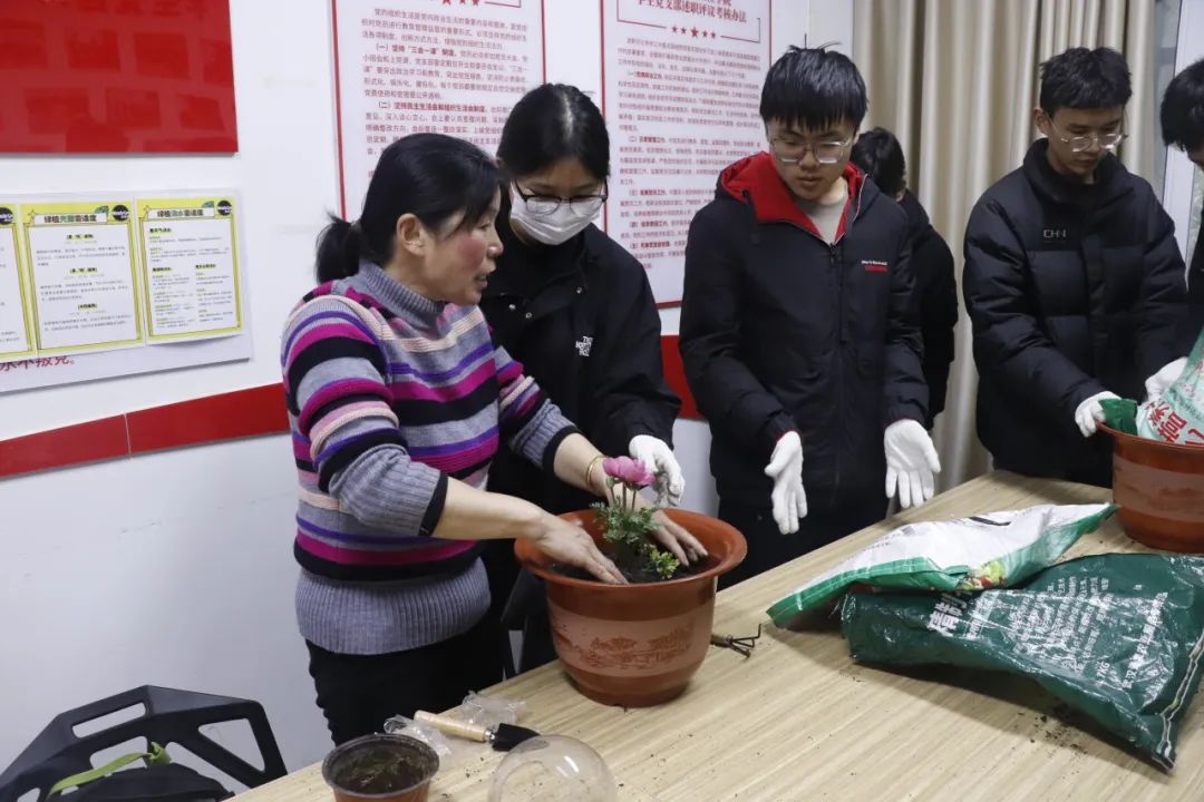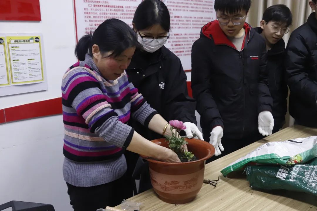 同学们以团支部为单位,在18栋佘阿姨的指导下,认真学习植物载种技巧。佘阿姨从工具的使用到植物养护,每一个环节都细心教导。