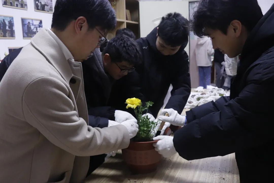 在佘阿姨的帮助下,各支团支部纷纷动手,将一株株充满生机的植物小心翼翼地种进花盆。看着亲手种下的植物,大家满心欢喜。