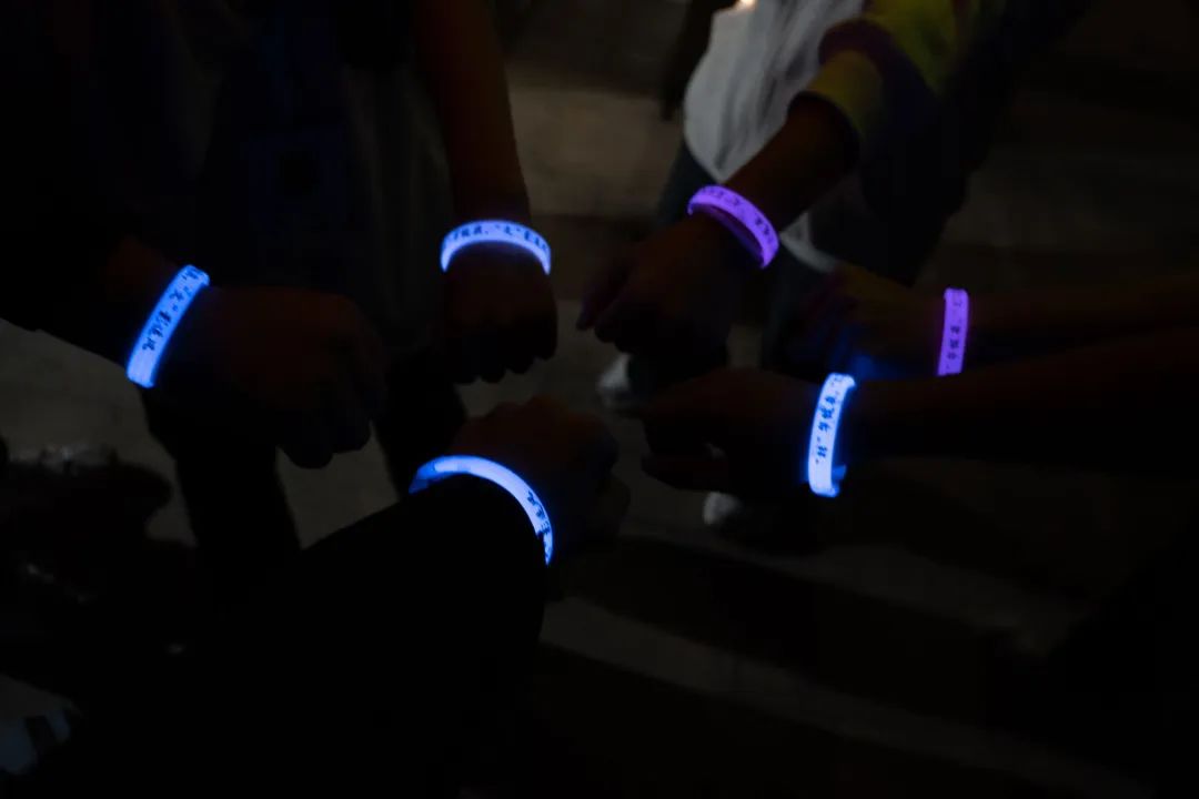 晚上六点半, 选手们齐聚起跑点,有序领取荧光手环等参赛物资,在点点星光的照耀下,黑夜也逐渐充斥着五光十色。