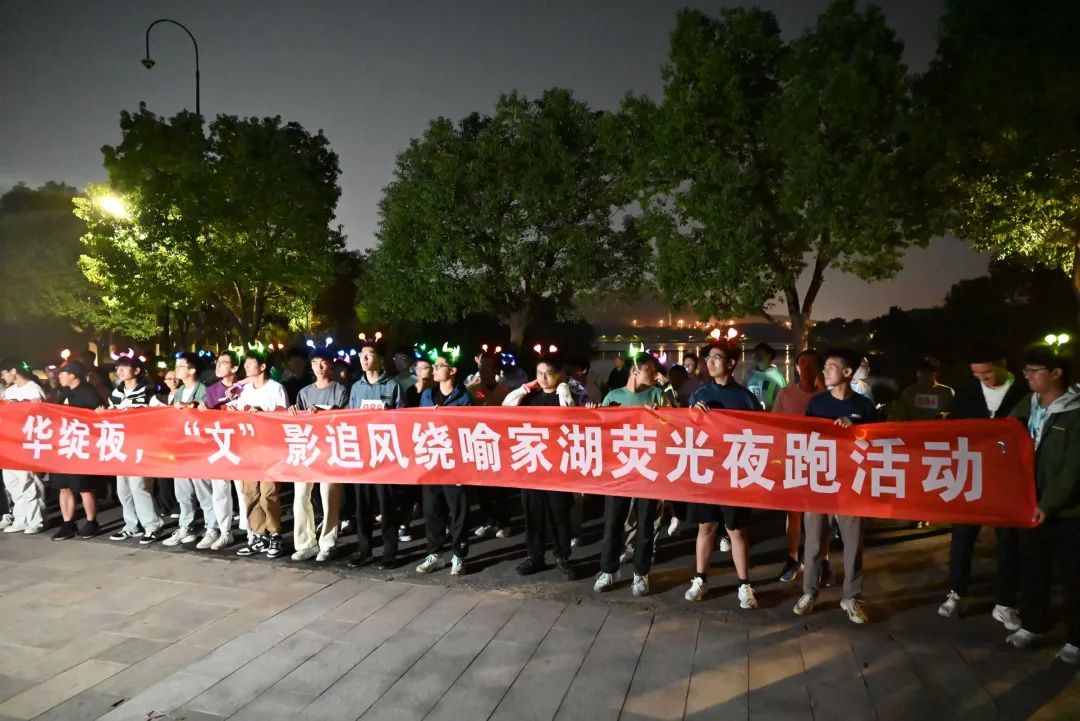 11月1日晚,由材料学院和人文学院共同举办的“‘材’华绽夜,‘文’影追风”荧光夜跑活动在喻家湖环湖绿道准时开跑。