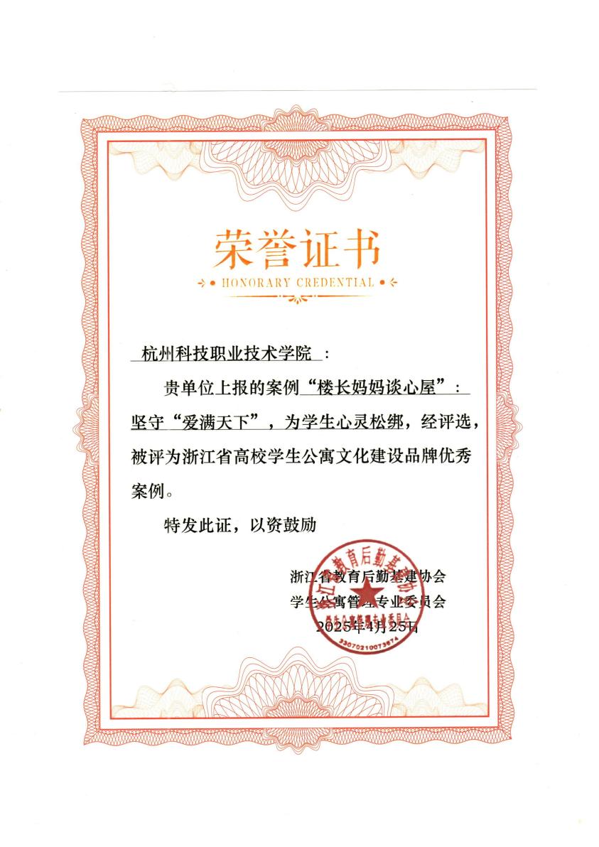 我校申报案例获评浙江省高校学生公寓文化建设品牌优秀案例