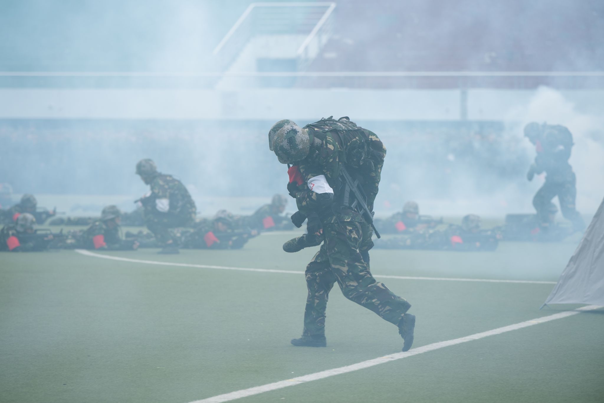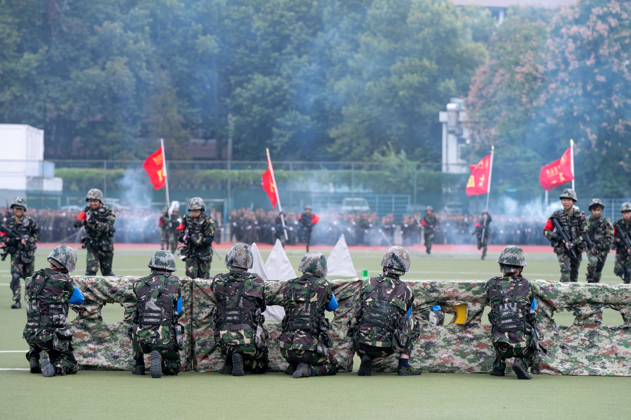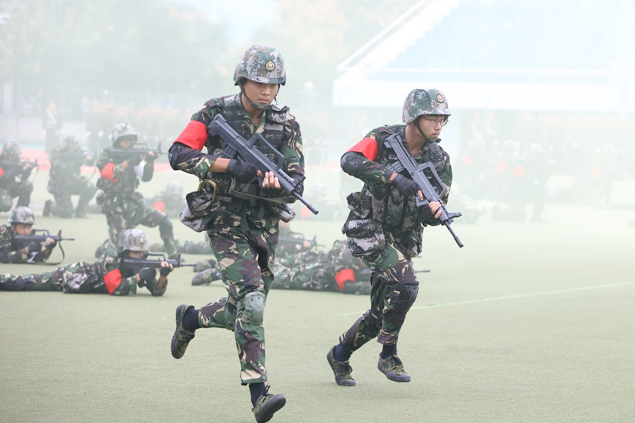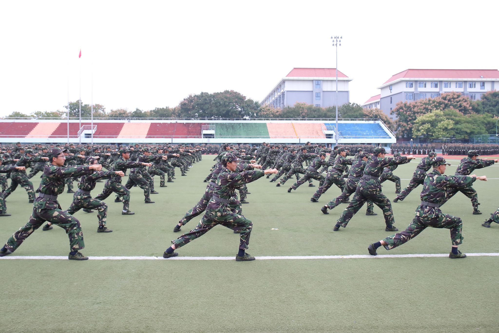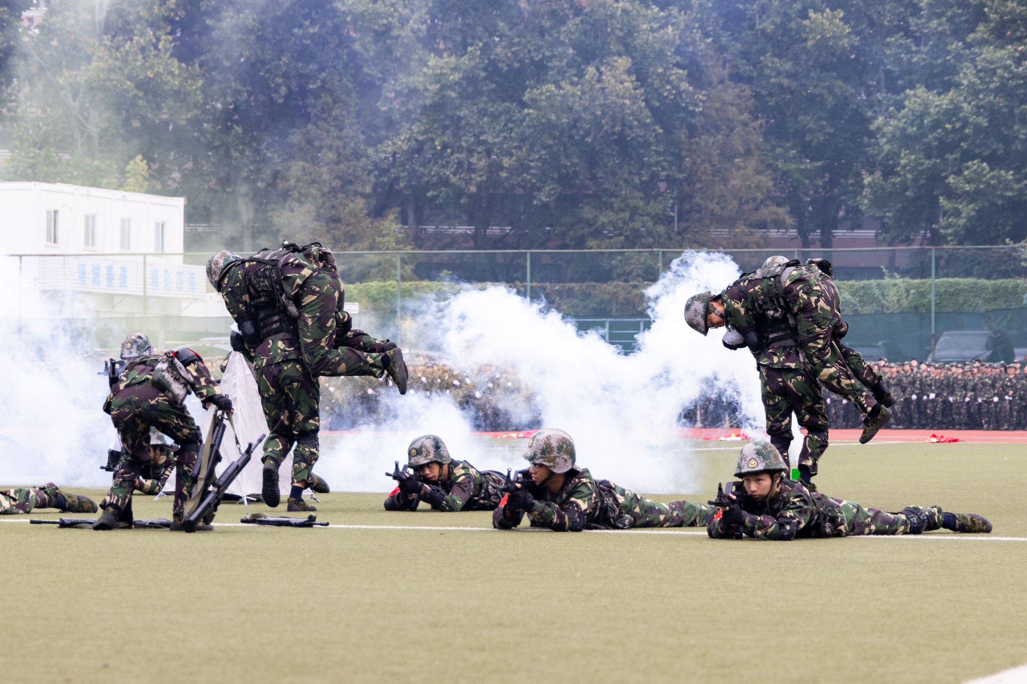 上午八点三十分,全体军训学员在东运动场集结完毕、整装待发。20天的军训中,他们圆满完成了队列训练、实弹射击、综合式野外拉练、战场医疗救护、战术演练、匕首操、擒敌拳等10余项训练项目。