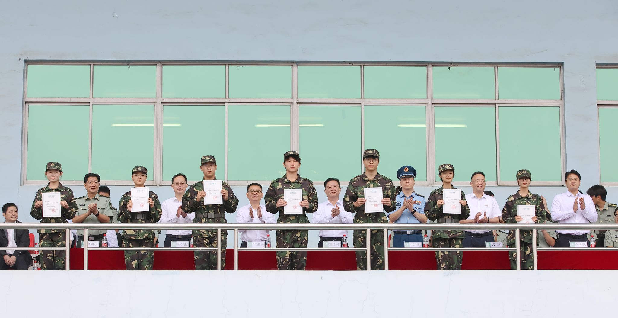 分列式结束,李向东宣读表彰决定。经评选推荐,军训工作领导小组审核,决定授予军训师一团等4个团为“军训优秀团”,授予军训师二团三营等9个营为“军训优秀营”,授予军训师一团一营三排等22个排为“军训优秀排”,授予李文博等27名教官为“军训优秀教官”,授予瞿明丽等13名政工干部为“军训优秀政工干部”,授予徐行等12名同志为“军训组织工作先进个人”,授予陈皓轩等506名学员为“军训优秀学员”。观礼台就坐的校院双方领导为先进集体、先进个人代表颁奖。