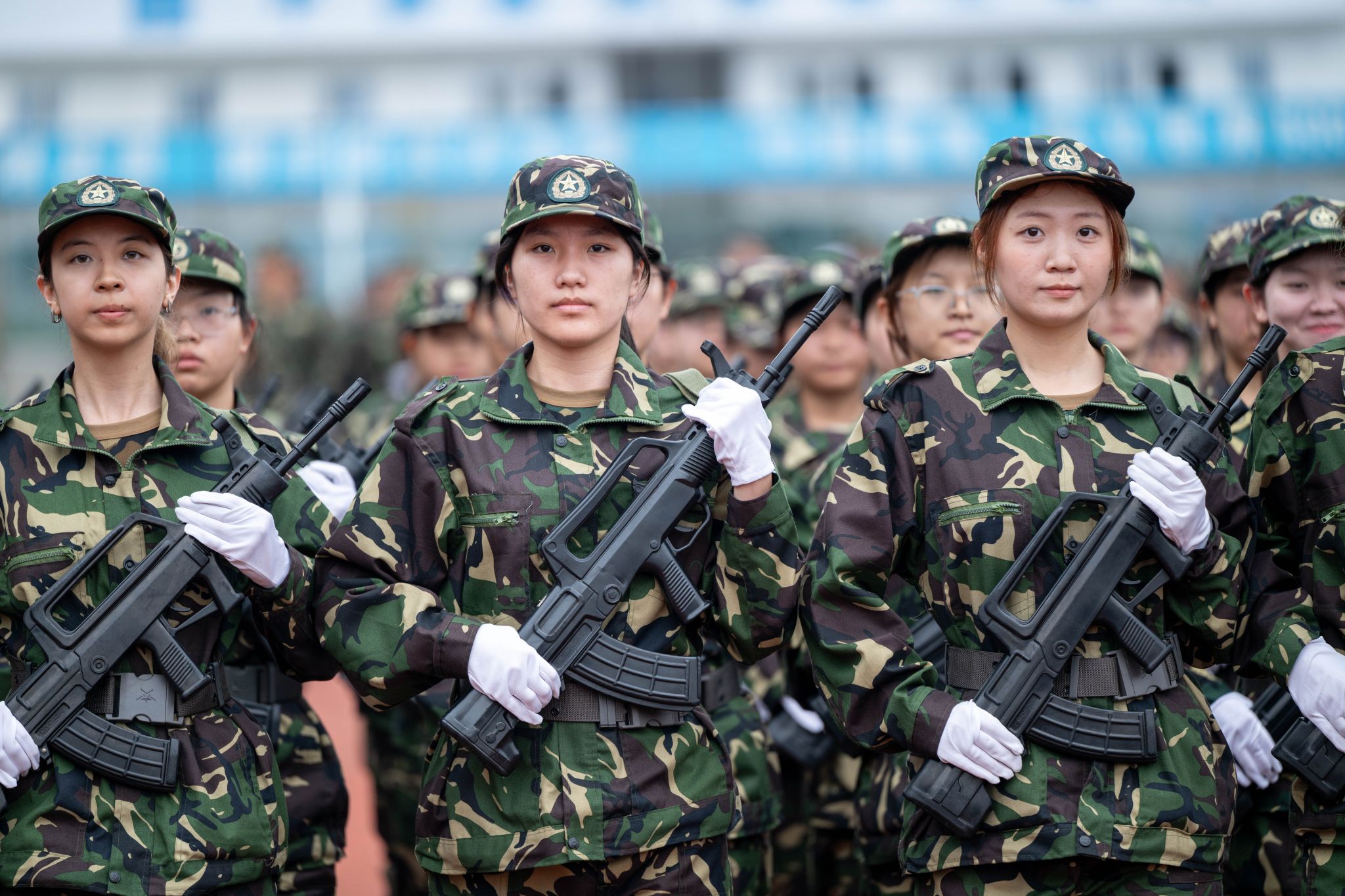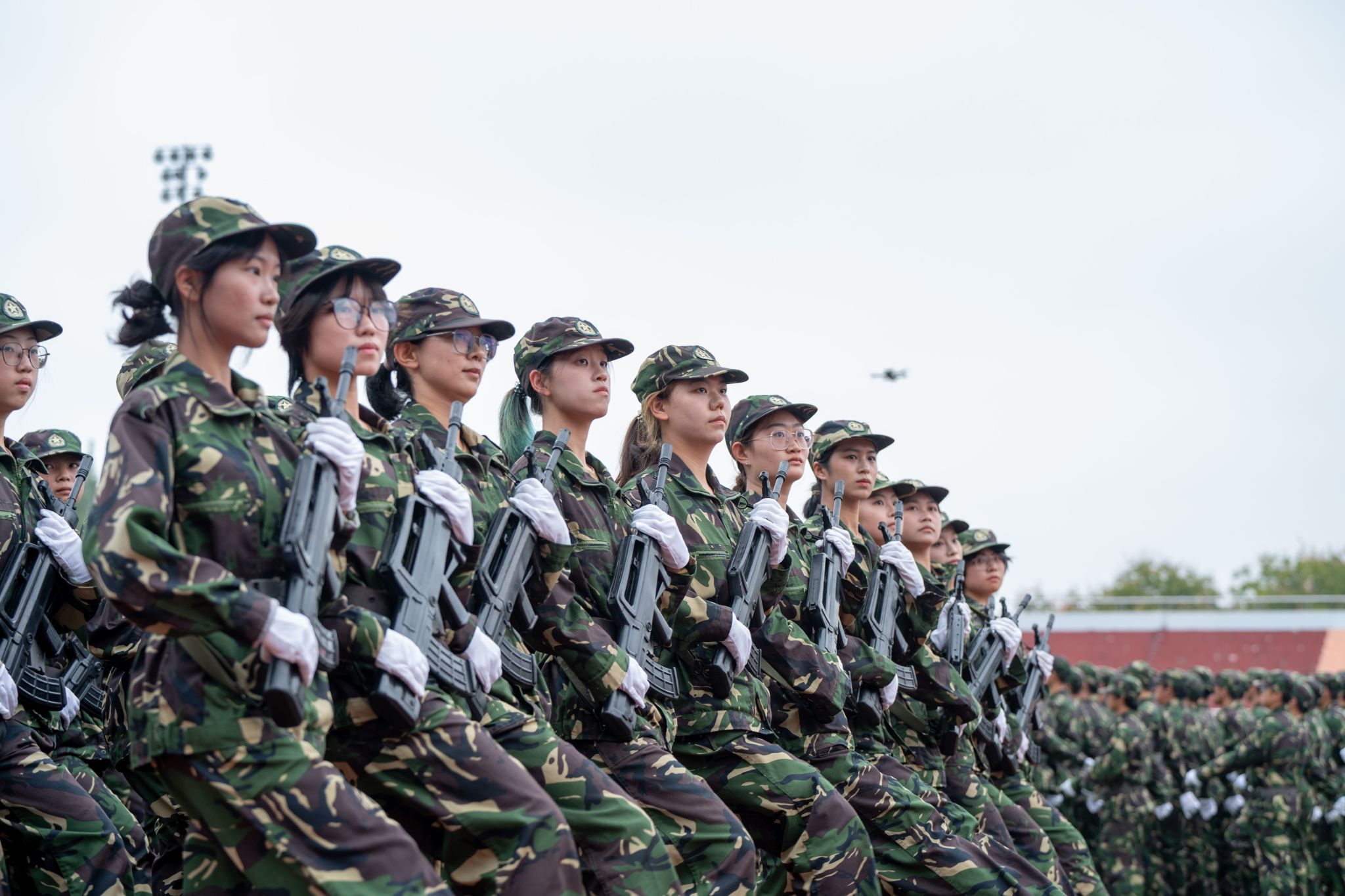 ▲女生挂枪方阵(学通社记者 高言曦 摄)