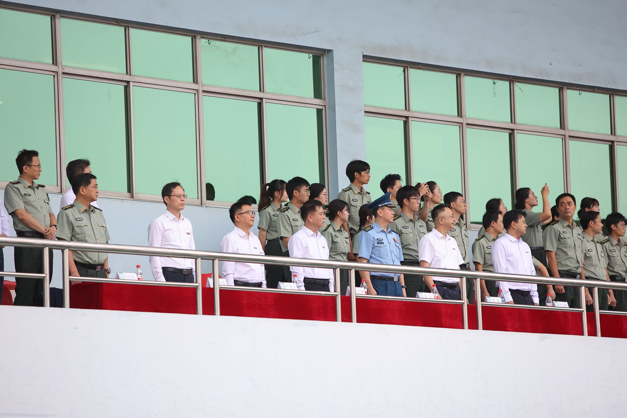 校党委书记姚江林,校长严建兵,承训单位、中国人民解放军空军预警学院张凡上校,校领导青平、杨少波、李大鹏,校党委常委、军训工作领导小组副组长李向东以及军训工作领导小组成员、校属有关单位负责人、全体教官、各学院班子成员、2025级班主任老师、辅导员、教学秘书等参加结业式。