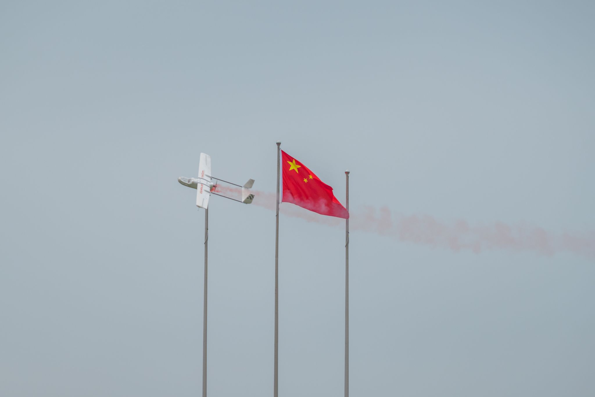 ▲从五星红旗旁盘旋,致敬伟大祖国(学通社记者 宁怡然 摄)