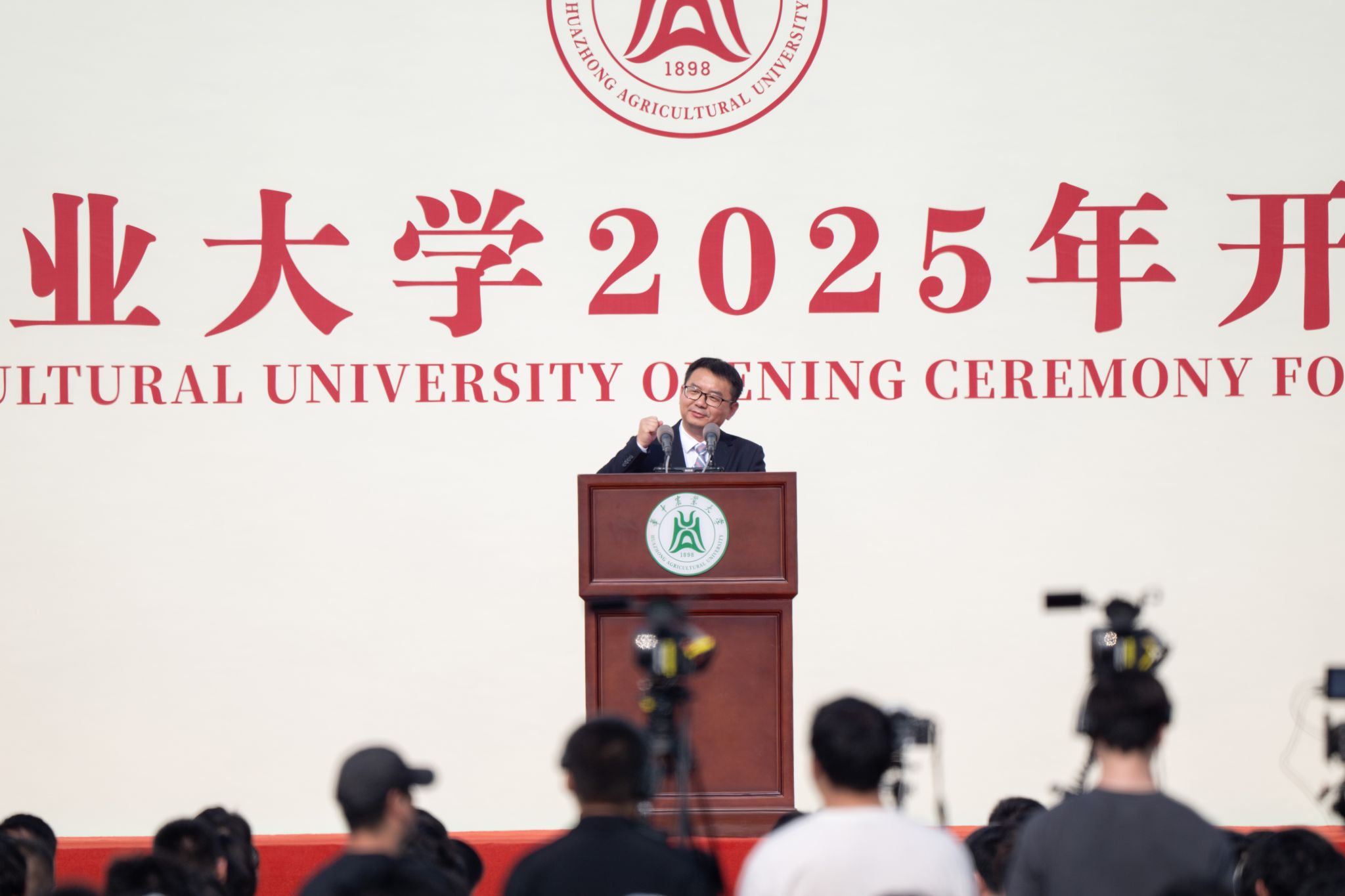 今天,我们在这里隆重举行华中农业大学2025级新生开学典礼。我谨代表学校、代表校党委书记姚江林老师,向新入学的4935名本科生、5085名研究生和来自21个国家的留学生,表示由衷的祝贺和热烈的欢迎!向你们的父母亲友致以诚挚的问候和衷心的感谢!还要向专程来到狮子山出席开学典礼的新西兰林肯大学教务长Chad Hewitt、副校长Damian Lodge先生一行15位老师表示衷心感谢和热烈欢迎!