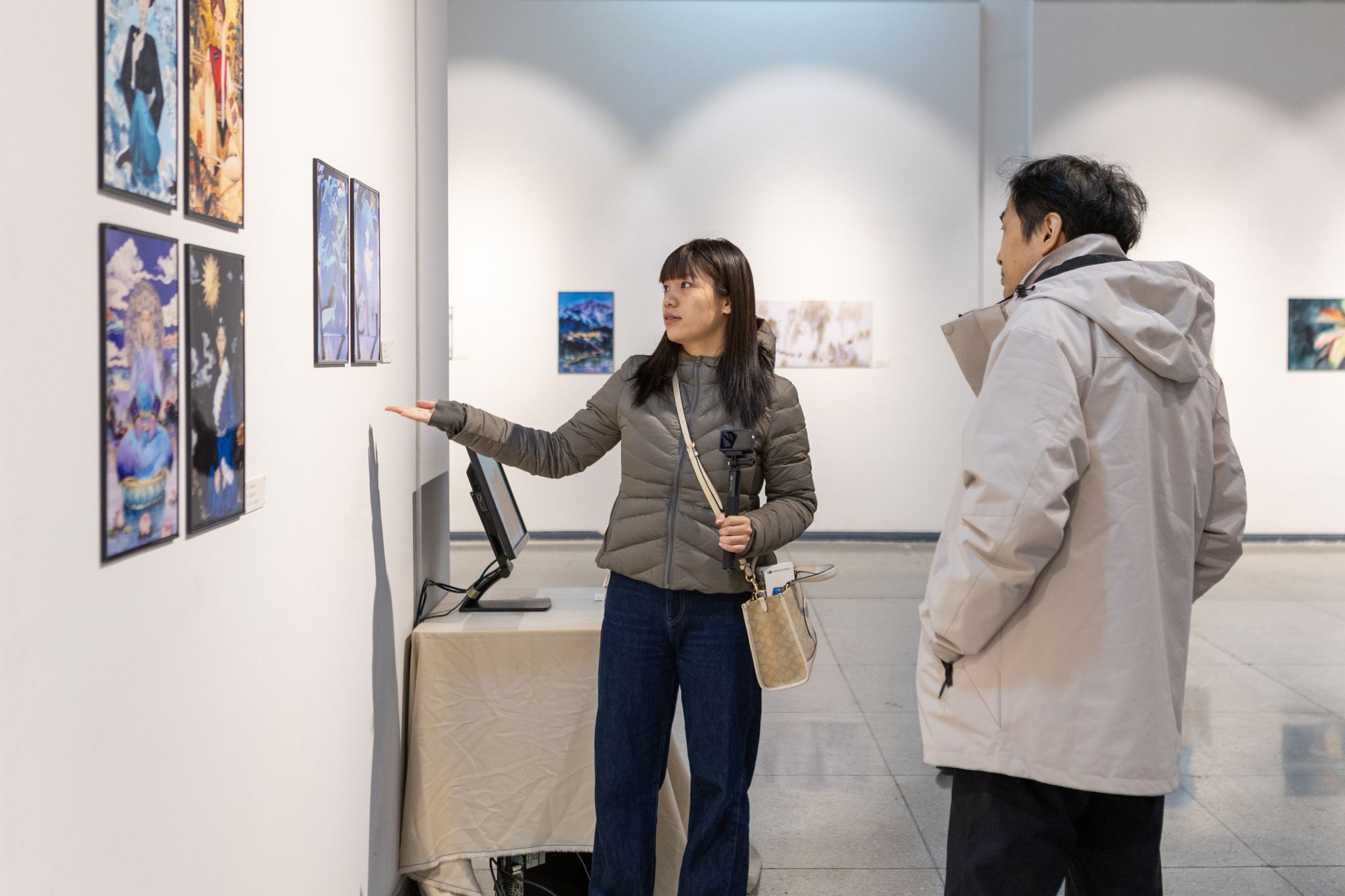 多媒体AI展区则集中展示了数字绘画、影像作品以及AI辅助创作的设计成果,将艺术创意与前沿技术相结合,探索艺术设计在新时代语境下的多元可能。
