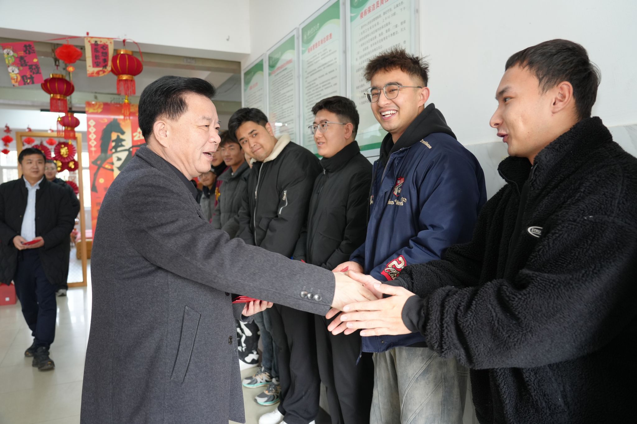 走访慰问期间,姚江林查看了寒假留校学生“小厨房”,在留校学生集中住宿楼栋与同学们交流,亲切询问了大家留校期间的学习和生活情况,并向他们派发红包和新年礼包。
