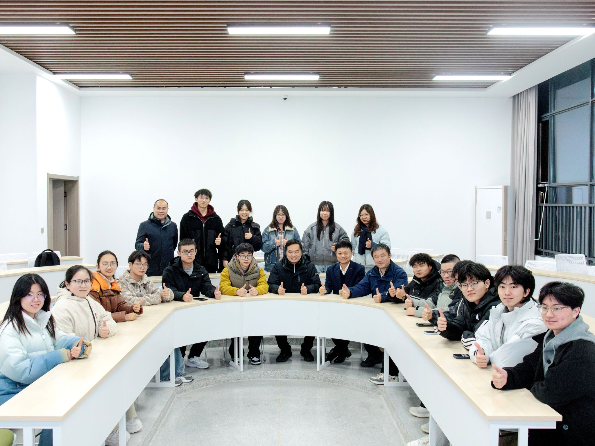 校党委副书记王从严在襄阳书院“两新基地”参加智慧农业2406班班会后与同学们留影(通讯员 陈一诺 摄)