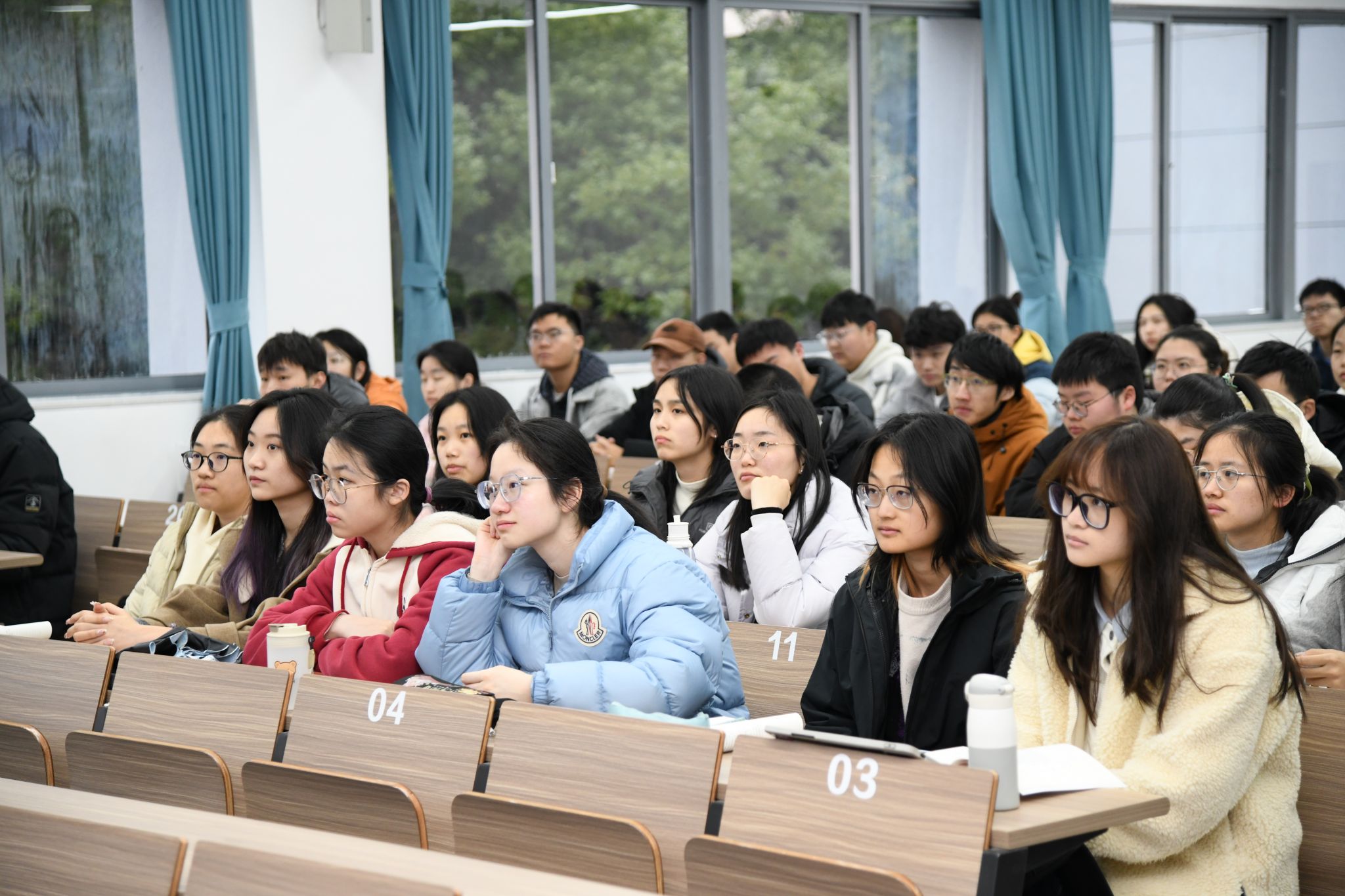 ▲三教A201教室,《习近平新时代中国特色社会主义思想概论》课堂(记者 徐行 摄)