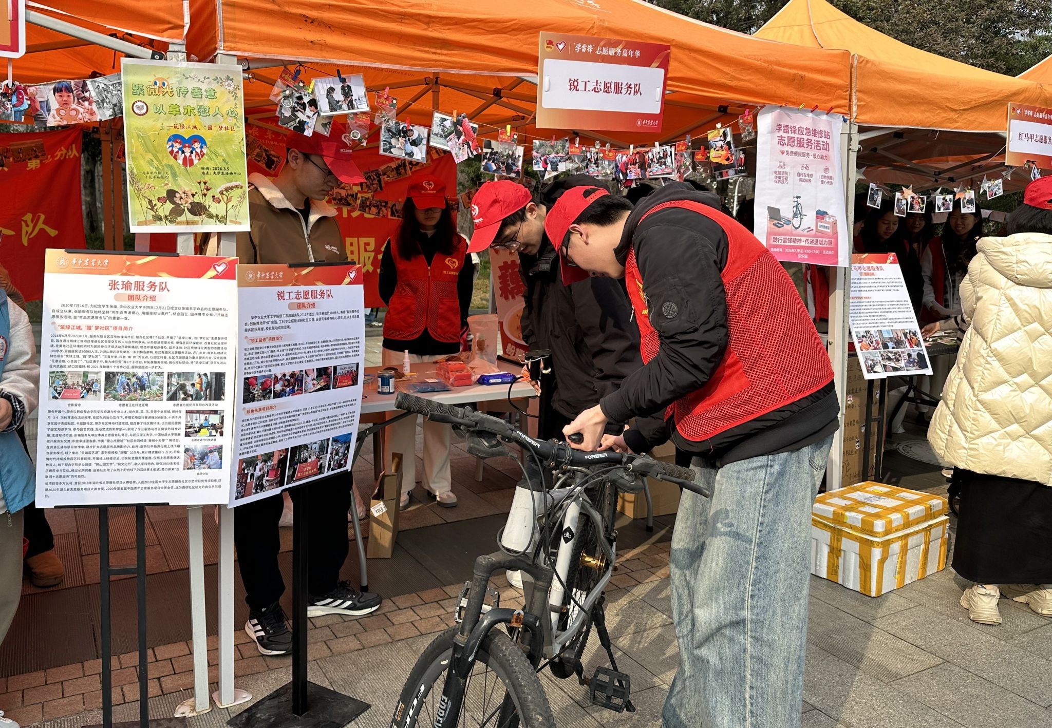 3月5日,在第63个学雷锋日和第27个中国青年志愿者服务日到来之际,学校志愿服务嘉年华在大学生活动中心小广场举行。全校21支本禹志愿服务队分队立足学科专业特色,通过创意展示、互动体验、科普宣讲等形式,集中呈现了学校在乡村支教、生态环保、社区治理、和美校园建设等领域的志愿服务工作与成果,吸引现场众多师生参与。