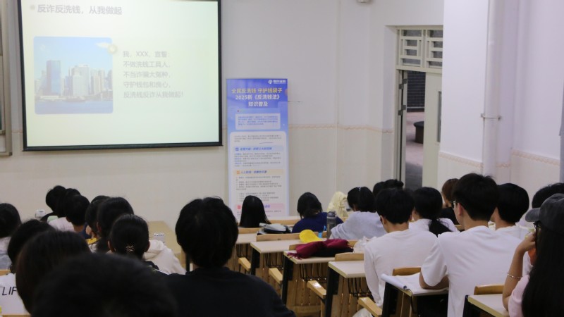 2025年3月11日下午,粤开证券惠州下浦路证券营业部在旭日科技大B座105教室举办了一场主题为“守护青春,不洗白,反诈反洗钱”的专题讲座。作为金融教育示范基地系列活动之一,此次专家进课堂活动聚焦于通识选修课《反洗钱揭秘》,旨在通过专业力量提升大学生的金融安全意识。