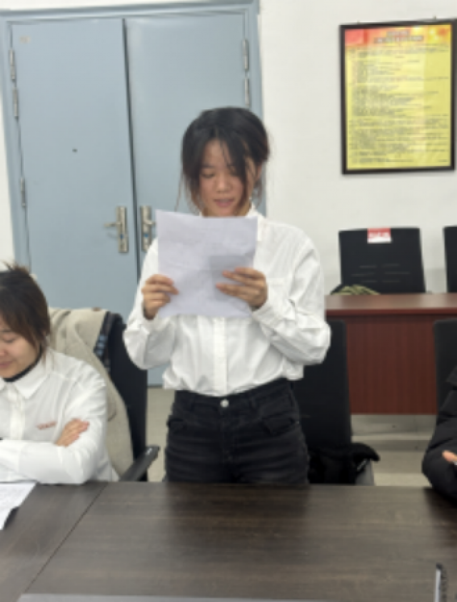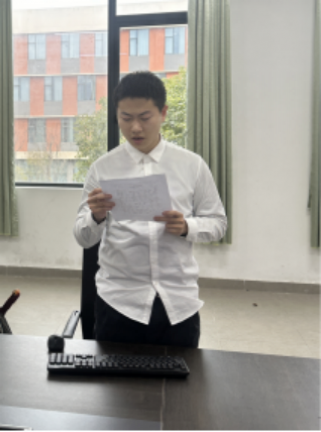 活动伊始,积极分子杨家兴同学围绕雷锋精神内涵从三个部分展开主题分享。第一部分“追根溯源,领悟真谛”,她引导大家梳理雷锋精神的历史渊源与核心要义;第二部分”“以身作则,践行雷锋精神力量”,激励着我们要以雷锋为榜样,结合学习生活实际提出践行路径;第三部分“持之以恒,传承雷锋火炬”,着重强调精神传承的时代价值,倡导建立常态化学习机制。