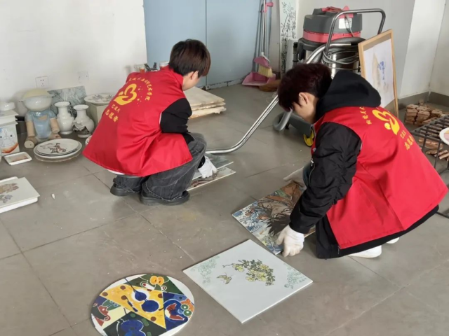随后,青年志愿者们化身“安全卫士”,在老师们的指导下,认真检查实训中心精密仪器室、高温电窑车间等重点区域,他们以“显微镜”般的细致,检查了消防设施、消防通道有无堆积物、配电箱线路和开关是否规范,并对发现的安全隐患进行了记录,及时反馈给了相关部门进行整改。实训安全排查之后,同学们又化身“空间魔术师”,将堆积如山的废陶瓷残件分类归置,把“丰满”的仓库变身为通透敞亮的创作空间;志愿者们用手中的扫帚,让实训中心重展锃亮光洁;他们分工合作,认真清理仓库、电窑室、实训中心等地方的垃圾,不放过任何一个死角。大家齐心协力,让校园环境焕然一新。