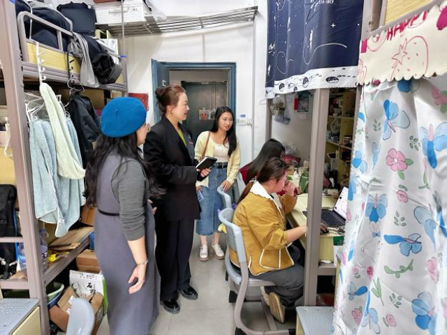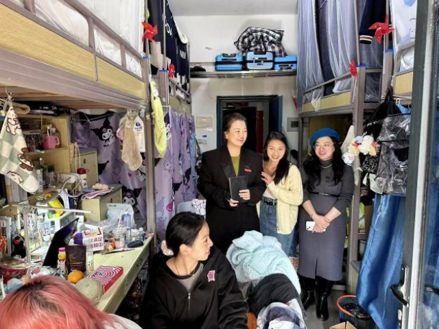 张博详细询问了大家的学业近况和生活情况,耐心倾听了同学们在日常学习中的收获与困惑,并提出具有针对性的指导建议。她仔细查看了寝室的卫生环境、用电安全、物品摆放、设施配备等情况,强调营造一个干净、整洁、舒适、和谐的居住环境对身心健康都非常重要。她鼓励同学们在学习之余积极参与校园文化活动,培养高雅的兴趣爱好,保持身心健康,同时勉励同学们努力学习,不负韶华,要充分利用本科阶段提升专业素养和学习能力,提高实践和创新能力,为今后职业发展打下坚实基础。