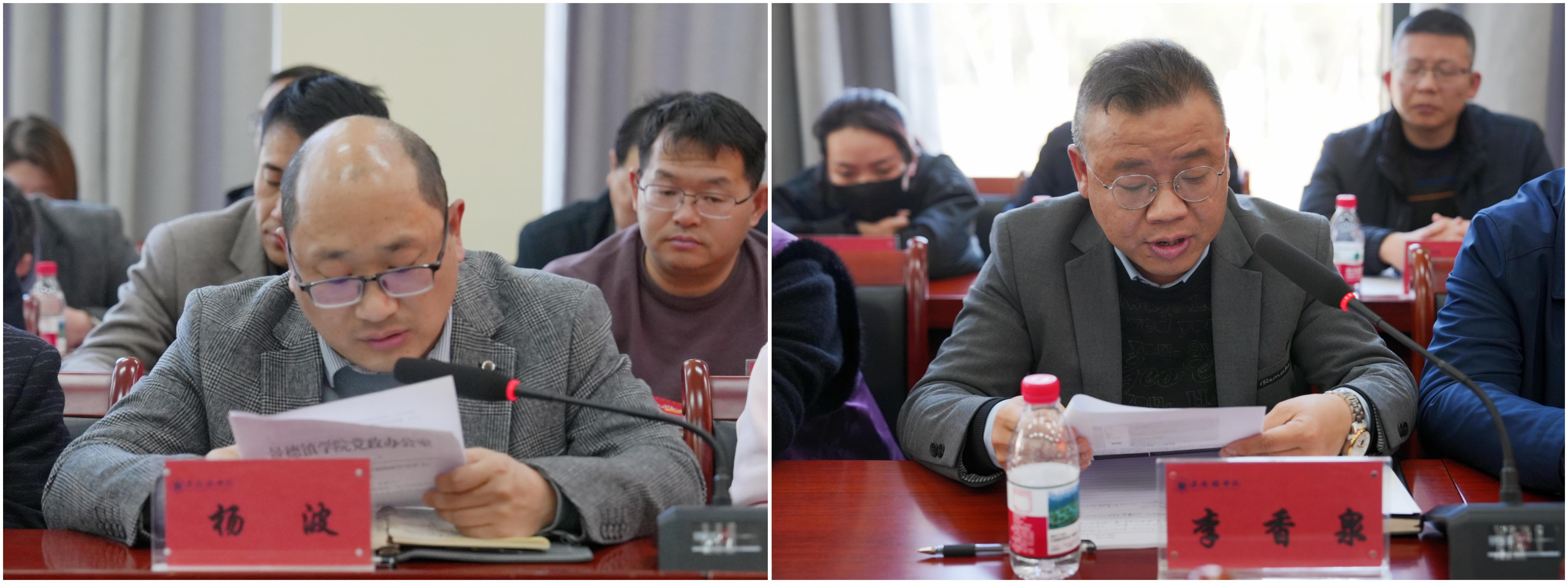 会上,科研处处长杨波、信工学院院长李香泉结合自身工作,围绕两会精神学习感受作交流发言。