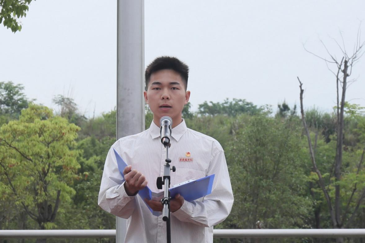 活动中,校团委书记赵新发言,勉励同学们把个人成长融入国家发展大局,以强国建设为使命,扛起时代赋予的责任,以坚定理想信念,踏实学习的态度,牢记学校的培养,带着感恩之情、奋斗之志和实干精神,在青春的道路上奋勇向前。学生代表戴方晴和谢天翔以自身学习与实践经历为切入点,讲述对五四精神的深刻理解与感悟,激励我校青年学子勇立时代潮头,勇担时代使命,以青春之力回应家国召唤,以坚实臂膀扛起时代重任,在实现民族复兴的赛道上奋勇争先,书写无愧于时代的青春答卷。共青团员代表们集体诵读红色家书,铿锵的声音传递着奋进的力量,坚毅的神情彰显着青春担当。