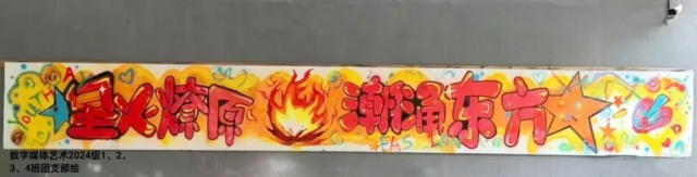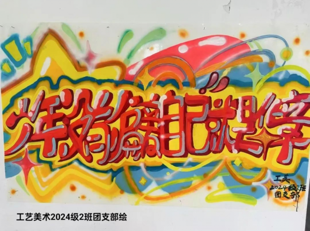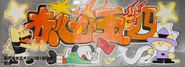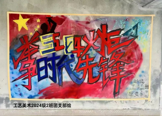 活动中各年级团支部团员们通力合作,创作出令人振奋的创作,这些作品不仅展现了同学们精湛的艺术表现力,更深刻诠释了新时代青年对五四精神的独特理解。有的作品以青春火炬为主题,用鲜明的红黑对比色展现革命薪火的代代相传;有的则创新性地将各种颜色、卡通动漫等元素解构重组,通过抽象的涂鸦手法表达新时代青年的使命担当。每一幅作品都展现了艺院青年对五四精神和革命文化的思考认识和创新艺术表达,让红色文化焕发出崭新的时代光彩。