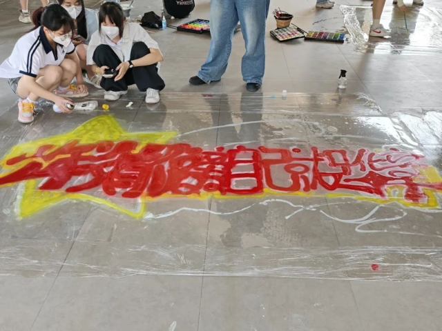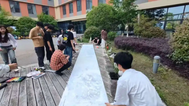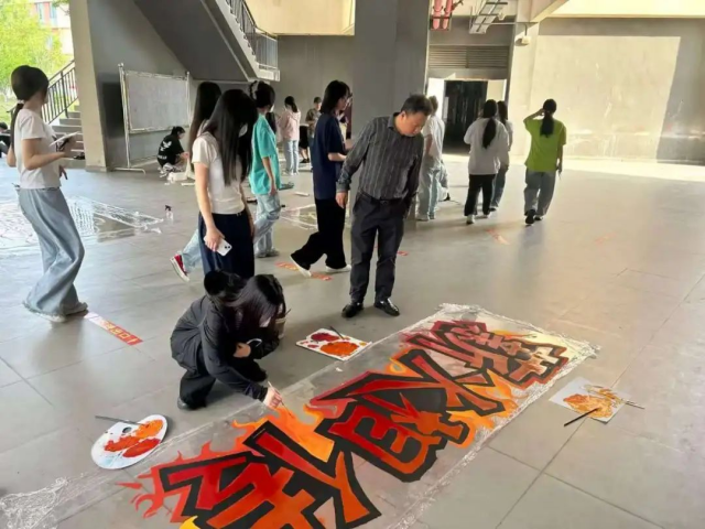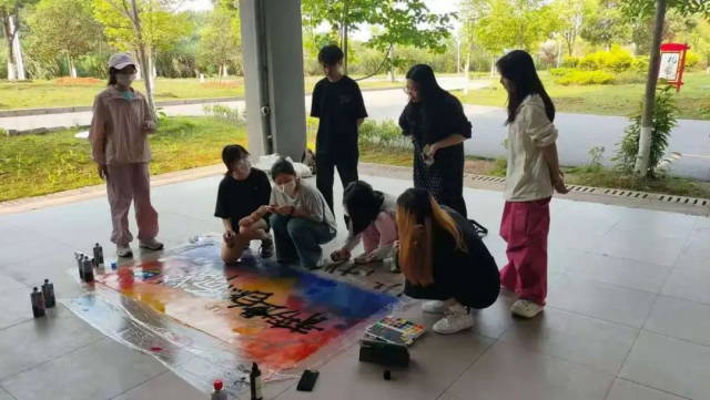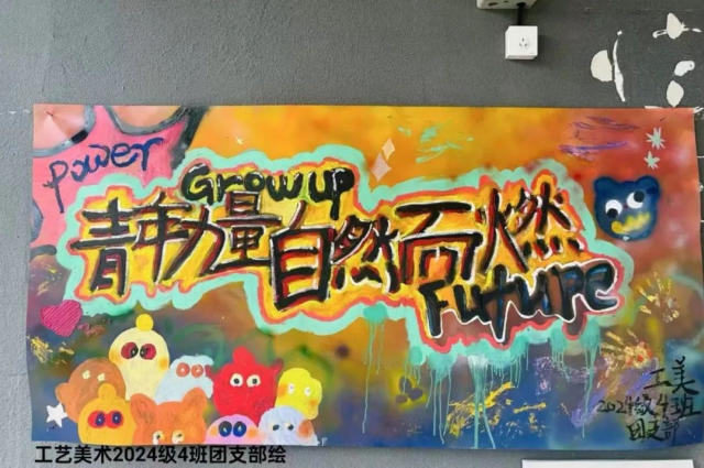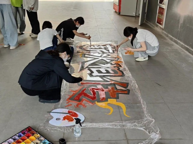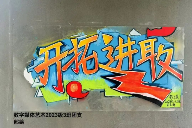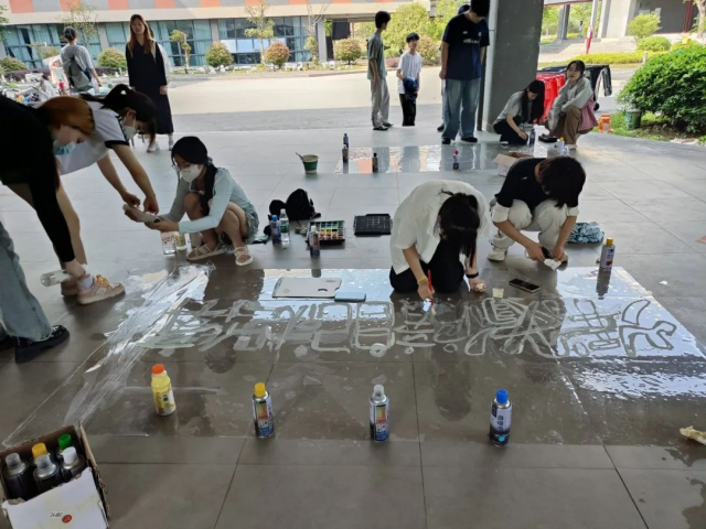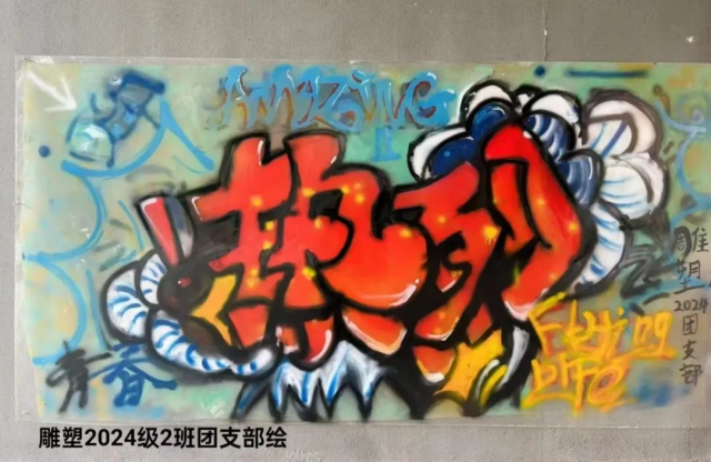 活动初始,在指导老师的带领下,同学们以饱满的热情投入创作。大家分组协作,围绕五四主题展开构思,手持喷漆与画笔,在画板上挥洒青春的色彩。笔触如跃动的火焰,勾勒出五四精神的铿锵轮廓;颜料如奔涌的热血,层叠渲染出新时代的青春画卷。一幅幅饱含激情的涂鸦作品在同学们手中逐渐呈现,每一笔线条都凝聚着对历史的致敬,每一抹色彩都迸发着对未来的憧憬。