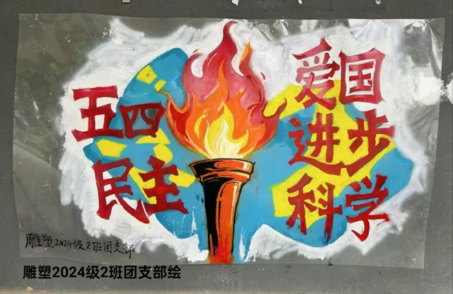 此次赓续五四薪火,绘制青春底色五四主题涂鸦活动,不仅是一场青春激情的艺术迸发,更是一次红色基因与时代精神交融的生动实践。同学们用当代青年特有的艺术语言诠释着五四精神的新内涵,在艺术创作中厚植家国情怀。 期待这份以艺术传承红色基因的创意之火能够持续燃烧,激励着青年一代在实现民族复兴的赛道上奋勇争先,用青春之笔续写时代华章!