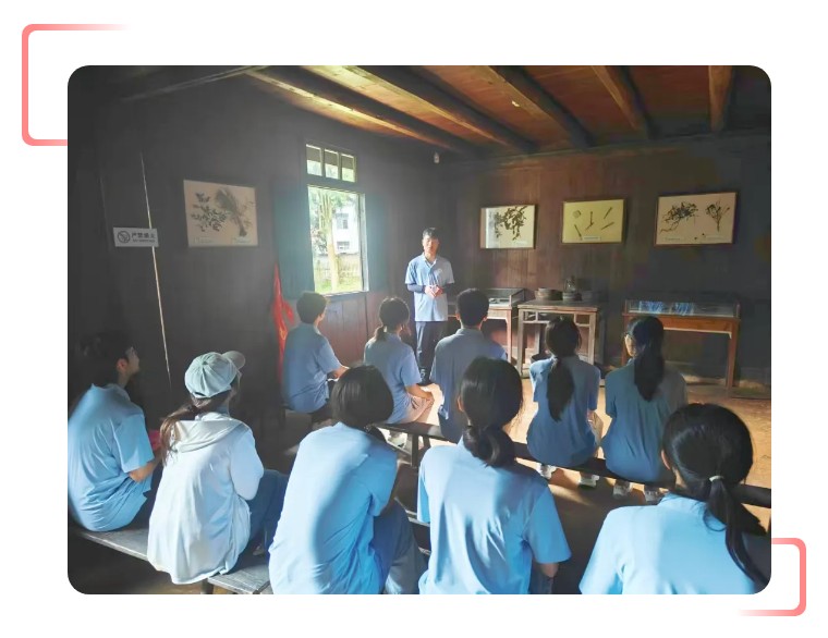 实践团创新采用“劳动教育+专业实践+思政育人”模式,深入井冈山腹地开展采药实践。在专业教师指导下,团队成员辨识了30余种中药材,学习采药、标本制作等技能,切身感受中医药文化的博大精深。同时,团队针对当地野生药材保护与种植的矛盾,提出“林下仿野生种植”方案,并结合民间用药需求,为后续研发提供依据。通过“采药思政课”,同学们将井冈山精神与中医药职业操守紧密结合,进一步坚定了传承发展中医药事业的使命担当。