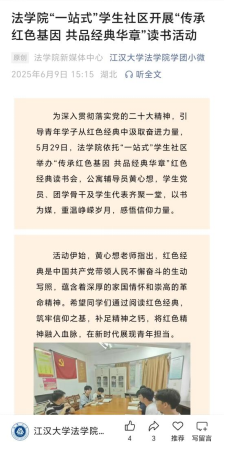 聚焦思想引领与安全防护,开展多维度、全方位宣传教育。依托社区活动、班级社群等线上线下多渠道,常态化推送反诈安全知识、心理健康小贴士、学业帮扶资源等实用内容;举办红色经典读书会等主题活动,组织学生深度研读红色著作、分享感悟体会,厚植爱国情怀,强化价值引领,让思想教育融入社区日常。