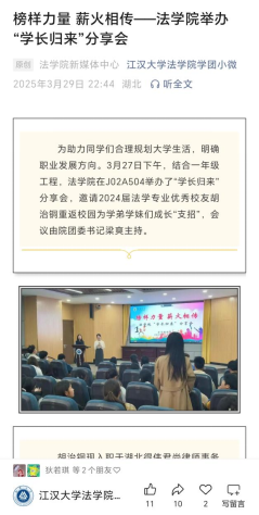 紧扣法学专业特色与学生成长需求,精心打造系列品牌活动。学业帮扶方面,组建学霸宣讲团,常态化开展考研经验分享会、专业知识答疑课,助力学生学业提升;心理健康方面,举办沉浸式心理健康活动、情绪管理讲座,筑牢学生心理防线;文化建设方面,策划寝室文化节、法律知识竞赛等活动,丰富学生课余生活,营造勤学向善、和谐向上的社区氛围。