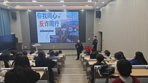 为此,红旅驿站“一站式”学生社区引入校警协同育人力量,特邀金华市公安局江南分局西关派出所谢国发、董正一两位警官,共同打造“沉浸式反诈实训课堂”,社区将安全教育工作做到学生生活第一线,针对数字化时代校园安全新挑战,精心策划“你我同心·反诈同行”专题教育活动。