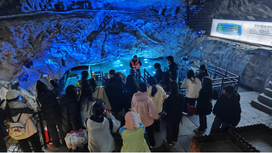 智慧文旅实践模块创新采用“双师带徒”机制,红旅驿站邀请企业技术骨干与专业教师共同指导学生研究技术应用课题。通过分析全域智慧游览系统的底层逻辑,学生团队在双龙洞景区借助VR投影观看了喀斯特地貌形成过程的AR动画,还领略了VR洞穴探秘演绎的过程,完成了项目原型开发的实践,这种“真实场景+真实项目”的教学方式,将课本中的旅游数字化管理知识转化为可落地的实践项目。