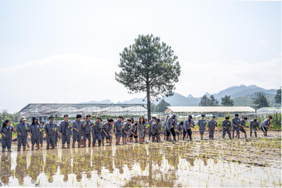 活动当天,农场主化身耐心的“师傅”,中外师生认真学习,亲手实践,在插秧过程中互相交流,增强了社区成员之间的凝聚力和文化认同感。在活动过程中,大家纷纷褪去鞋袜,挽起裤管,毫不犹豫地踏入那片泥泞的水田中。通过这次插秧,同学们深刻理解了“谁知盘中餐,粒粒皆辛苦”的含义,学会珍惜劳动成果,真正将劳动教育落实到实践中,实现了以劳树德、以劳增智、以劳强体、以劳育美的教育目标。