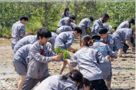 插秧时,大家相互帮助,形成了积极向上的劳动文化风尚。此外,同学们还进行了充满趣味性和竞技性的插秧小竞赛,激发了社区成员的参与热情,让同学们在互助竞赛中更深刻地感受到劳动的不易,树立起珍惜劳动成果和尊重劳动的意识,在实践中体会劳动的价值和意义,为社区注入了新的活力。
