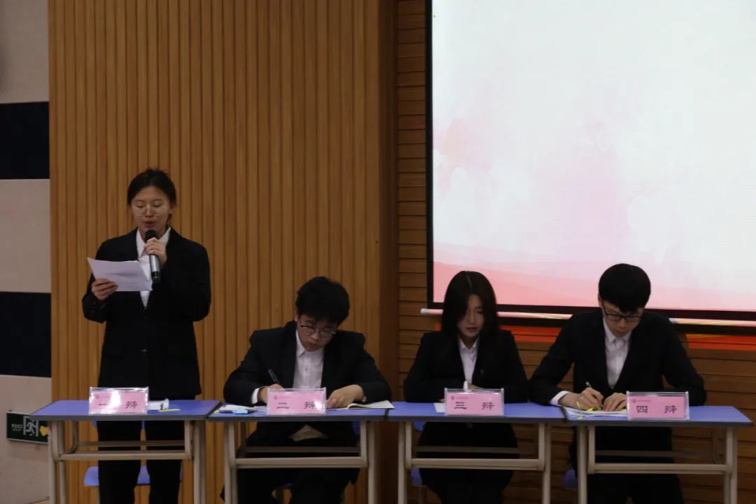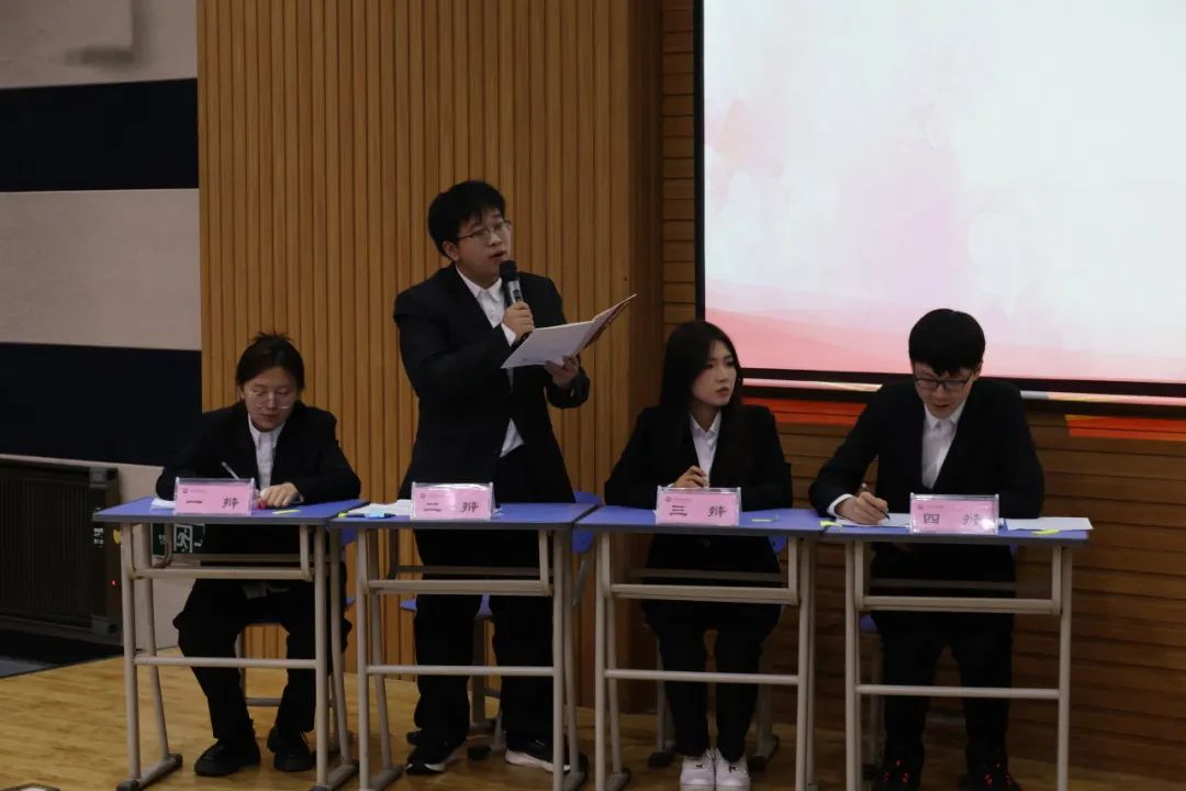 本次辩论赛决赛辩题为:有/没有遗憾的青春更完美。辩论赛共设置“开篇立论、盘问阶段、自由辩论、总结陈词”4 个环节。辩论赛开始前由主持人做开场致辞,并向观众和参赛选手明确比赛规则和注意事项,以确保比赛的顺利进行。比赛中,现场气氛热烈,双方辩手充分展现了各自的风采,他们用事实和逻辑的力量,一次次地征服了评委和观众的心。比赛虽然结束,但选手们在台上展现出的激情与风采,以及他们对知识的渴望和对真理的追求,将会在校园里久久回荡。