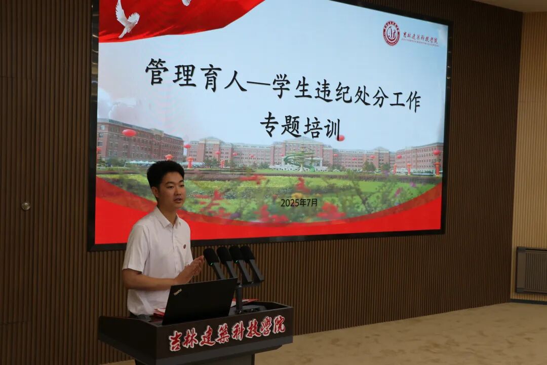 随后,培训现场举行了2025年“青蓝工程”师徒结对仪式。仪式上,各学院新老辅导员代表现场郑重签订《吉林建筑科技学院辅导员“以老带新”结对协议书》,以“传帮带”促“成长力”,助力打造有情怀、有能力、有温度、有思想的学工队伍。