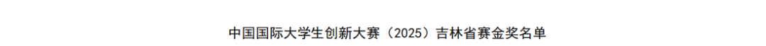 我校在中国国际大学生创新大赛(2025)吉林省赛中荣获金奖