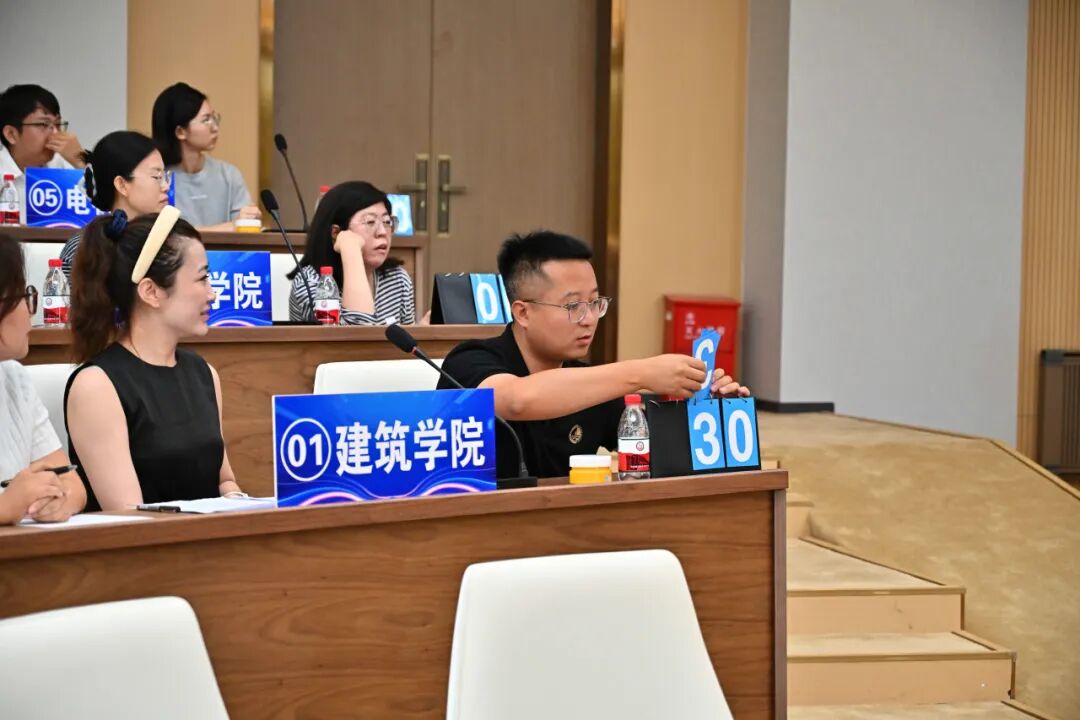 经现场工作人员严谨统计核查,并在纪检办的监督下,确定了竞赛结果。马克思主义学院、能源与环境工程学院代表队荣获一等奖;数字建造学院、建筑与规划学院、创意设计学院、计算机工程与人工智能学院代表队获得二等奖;管理工程学院、外语学院、交通工程学院、土木工程学院、电气与机械工程学院、基础科学部代表队获得三等奖。校领导为获奖单位颁奖并合影留念。