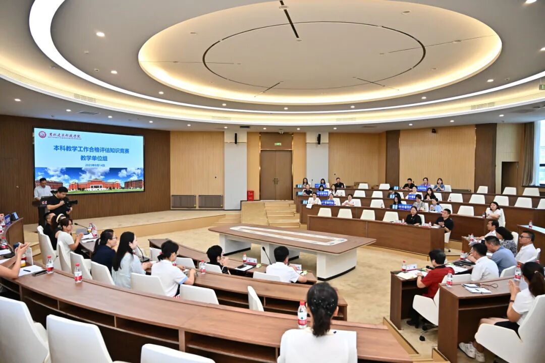 8月14日上午,学校在国际交流中心组织开展教学单位评估知识竞赛活动。学校领导班子成员,评建办、校工会、纪检办相关负责人,各教学单位代表队参赛人员参加活动。