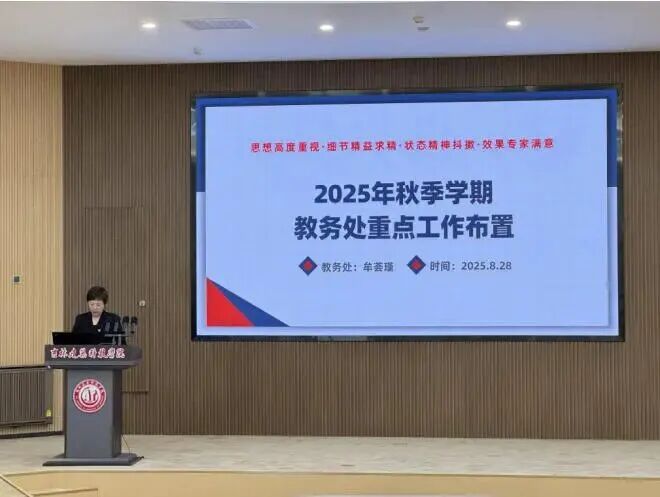 教务处处长牟荟瑾部署了2025年秋季学期教务处11项重点工作。她表示,本学期学校将以迎接本科教学工作合格评估为核心任务,在做好日常教学规范管理的同时,持续深化教育教学内涵建设。