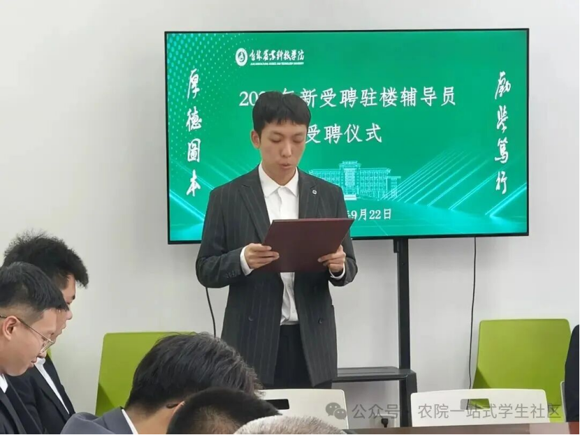 仪式在热烈的掌声中圆满落幕。此次受聘仪式不仅是对新辅导员的欢迎与期许,更是对驻楼育人工作的再动员、再部署。未来,我校驻楼辅导员队伍将以制度为基、以经验为鉴、以使命为要,在学生公寓这片育人阵地上,用青春的坚守与奉献,书写新时代学生工作的暖心篇章!