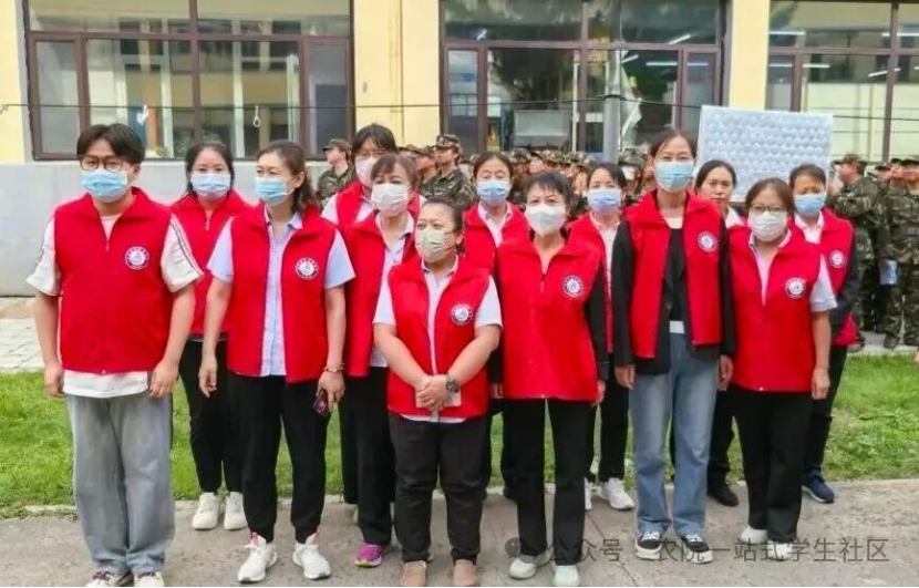 9月23日下午13:00,九站校区全体新生按中队在公寓楼前集结,随身携带毛巾,在教官的指挥下完成人数清点。