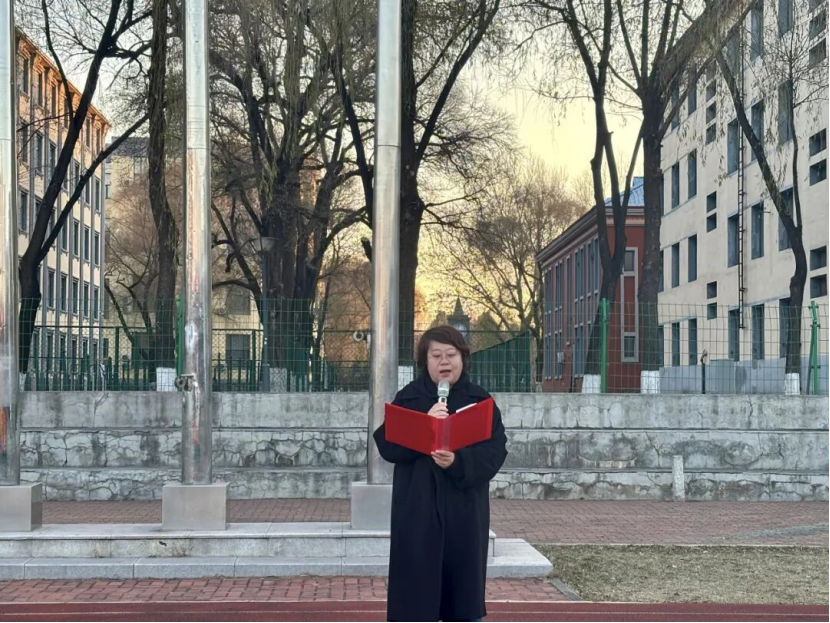 仪式伊始,国旗护卫队迈着铿锵有力的步伐,护送国旗庄严入场。激昂雄壮的国歌响彻校园,鲜艳的五星红旗冉冉升起、迎风飘扬,全体师生肃立致敬,向国旗行注目礼,赤诚的爱国情怀与感恩之心在每个人心中激荡共鸣。