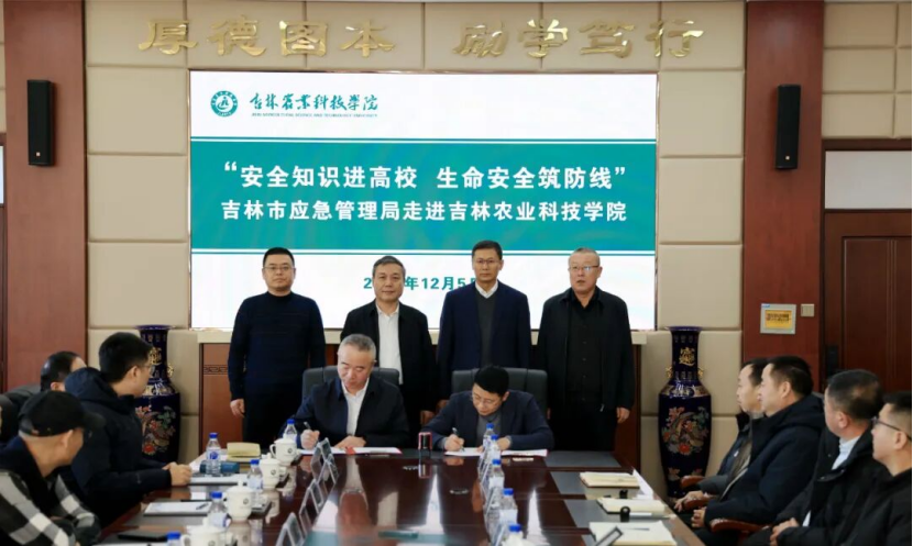 活动中,陈锡红与尹柏双共同签署《吉林市应急管理局吉林农业科技学院安全风险防范联动机制》。签约仪式后,潘力表示,学校将严格履行协议内容,主动对接市应急管理局指导要求,把联动机制各项任务落到实处,以校地合力守护师生安全,为城市安全发展贡献高校力量。