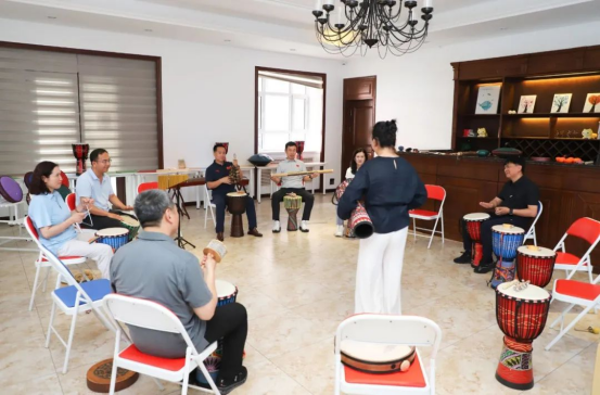 “音乐疗愈的核心是让情绪跟着声音自然流动,不用刻意追求完美,跟着节奏自由击打就好。”在音乐疗愈工作室,随着心理咨询师刘颖教授的语言引导,各位校领导都主动拿起乐器加入互动体验,尝试着用音乐回应。起初杂乱的节奏渐渐合拍时,大家脸上的拘谨随之消散,取而代之的是轻松的笑容。“您看,当注意力从‘对错’转移到‘呼应’上,协作就自然发生了。”刘颖教授适时解说,手中的沙锤轻轻摇晃,为这场即兴演奏添了层柔滑的底色。校领导们深刻体会到,音乐疗愈不仅能舒缓学生的心理压力,其蕴含的协作理念,也说明了加强团队协作的重要性。不搞形式主义的“齐步走”,而是在相互倾听中找到最和谐的节奏。