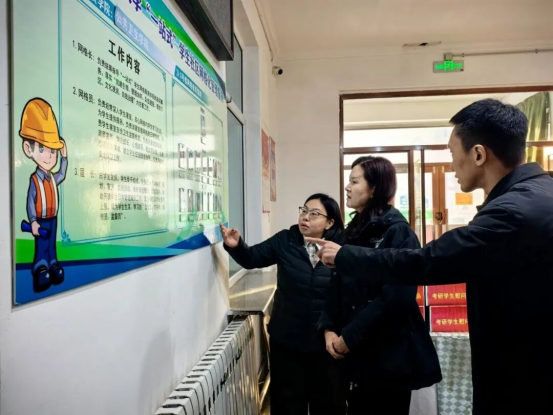 11月12日下午,校党委常委、组织部部长谢莉莉与公共卫生学院党政领导、学工办辅导员一行,走进一区B院5号公寓楼“一站式”学生社区,实地走访调研社区运行情况,并亲切看望备战考研的学子。