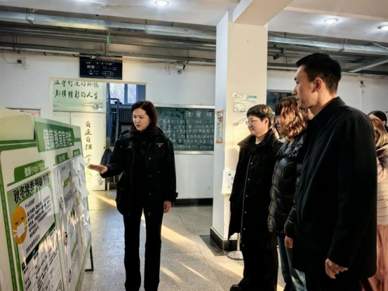 谢莉莉一行首先来到学生自主设计制作的“健康教育宣传栏”前,认真听取同学们的创意讲解。她对学生结合专业知识、动手实践打造社区文化阵地的做法表示赞许,并指出,这样的实践不仅深化了学习,更锻炼了创新与协作能力,是学以致用的生动体现。她鼓励同学们继续发挥主动性,共同营造富有专业特色、积极健康的社区文化氛围。