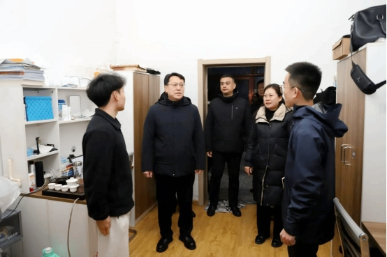 校长钟卫东深入人才一公寓、15号网格寝室楼,以安全规范检查与走访调研相结合的形式,与来自不同学院的研究生亲切交流,详细询问学习科研进度、生活状态,并耐心倾听大家在校园生活中遇到的困难与困惑,为同学们排忧解难,传递学校的关怀与温暖。期间,钟卫东一行还实地踏查自习室、洗衣房等公共区域环境设施,细致查看设施运行情况,为进一步优化学生社区服务保障、提升网格建设质量奠定基础。