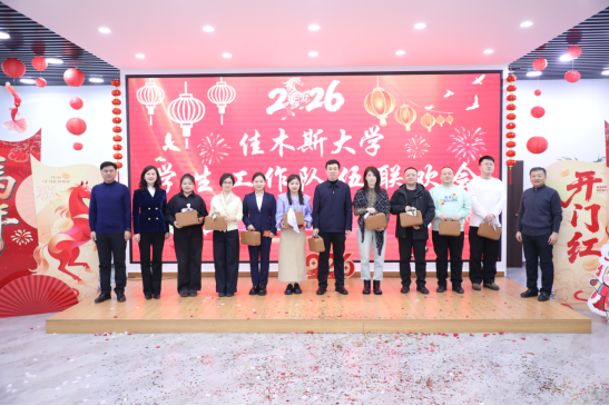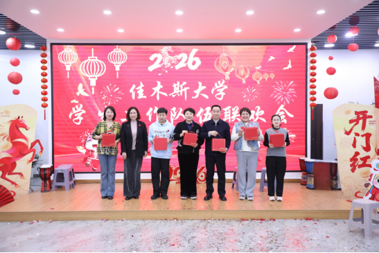 一元复始,万象更新。一群与学生朝夕相处的人,在年末卸下日常的严肃,展现了怎样意想不到的才华?他们的节目里,藏着哪些只有学生工作者才懂的欢笑与泪水?1月6日下午14时,佳木斯大学学生工作队伍2026年新年联欢会在“一站式”学生社区一区D院就业服务大厅圆满举行。校党委书记武瑞,校党委副书记、工会主席朱玉珠,副校长、党委常委隋晓冰,党委常委、组织部部长谢莉莉,党委常委、统战部部长王宏,党委常委、宣传部部长邢传波出席本次活动,同时到场的还有曾经奋战在学生工作战线的同仁们与全校辅导员、学生工作各职能部门工作人员大家一起欢聚一堂,共迎新年。