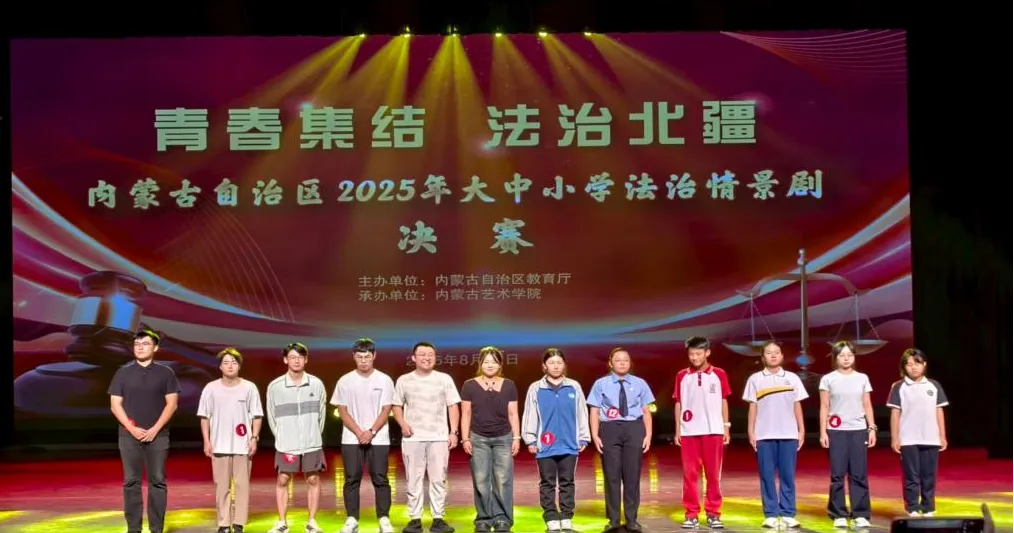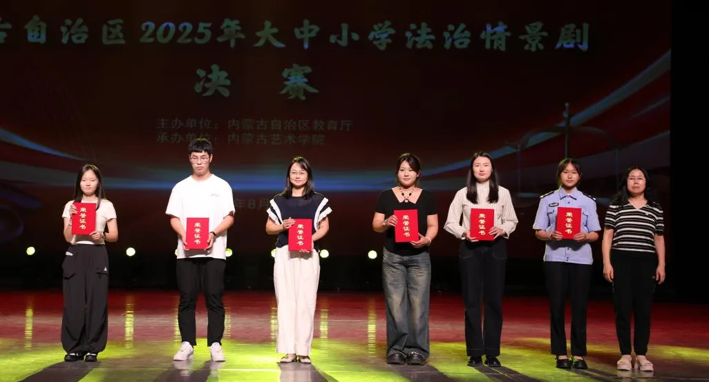 8月22日,由自治区教育厅主办的全区2025年大中小学法治情景剧比赛(决赛)在内蒙古艺术学院举行。我校选送的《白昼的盾》剧目荣获三等奖,我校荣获优秀组织奖,剧组成员曹宏伟同学获得个人优秀表演奖。