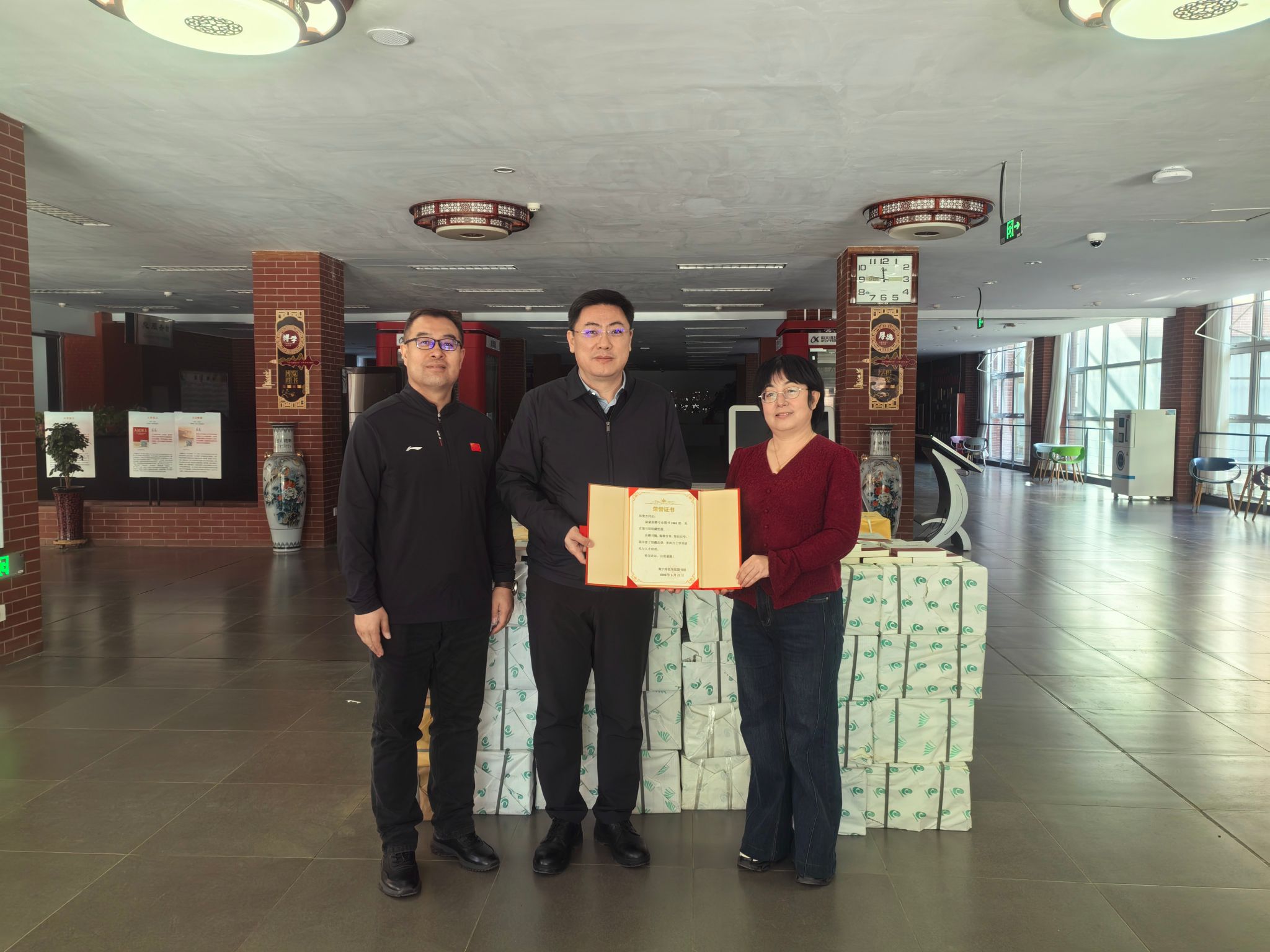 1月21日上午,校党委委员、副校长拓俊杰向校图书馆捐赠1965册优质图书。捐赠仪式在图书馆一楼大厅举行,科技处处长暴向平、图书馆副馆长尹晓慧及相关人员参加仪式。此次捐赠不仅充实了馆藏资源,也为学术研究与人才培育提供了有力支持。